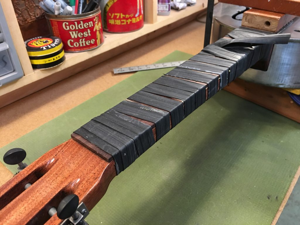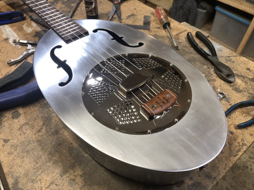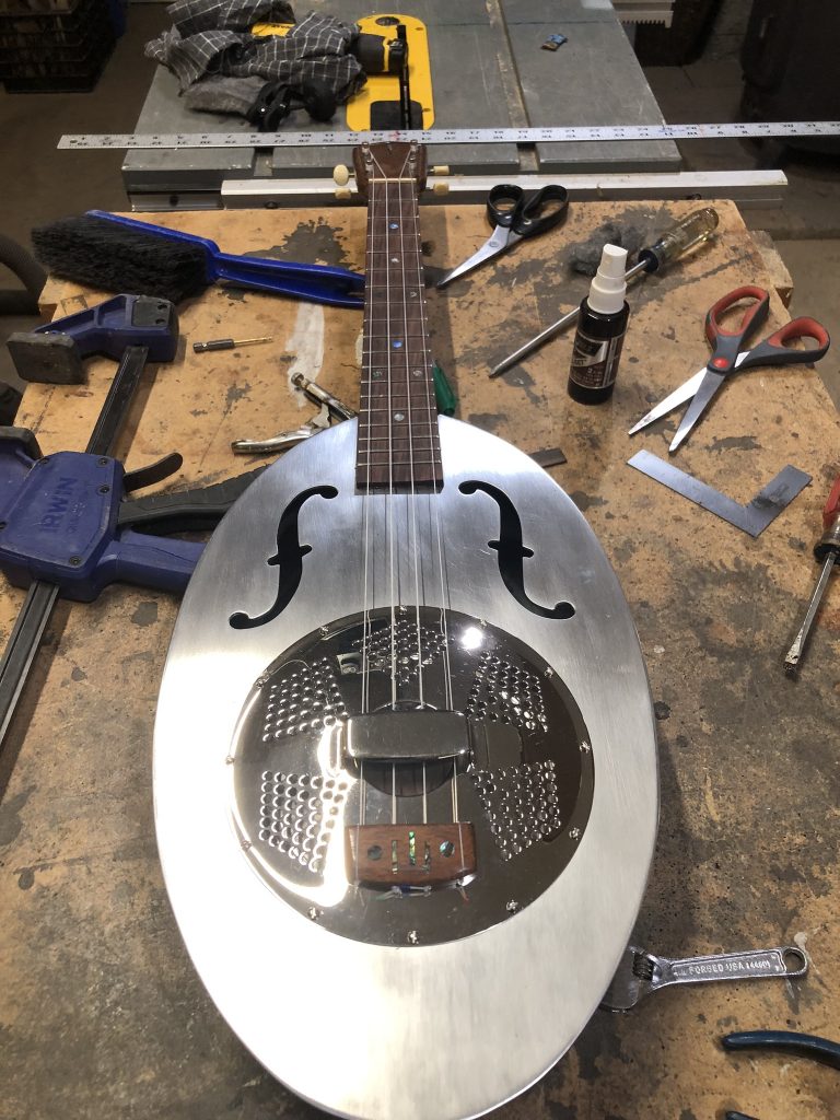 body was hand shaped and routed, and the aluminum nut and bridge give it great