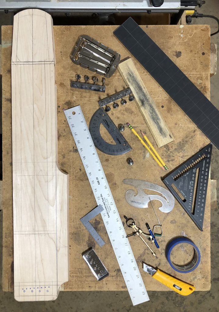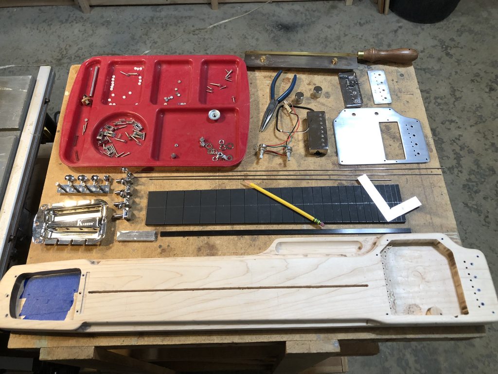 Solid maple body Ebony fretboard DiMarzio PAF Humbucker pickup Kluson “Ashtray” tuning machines Pearl fret markers Volume and tone controls Aluminum nut and bridge